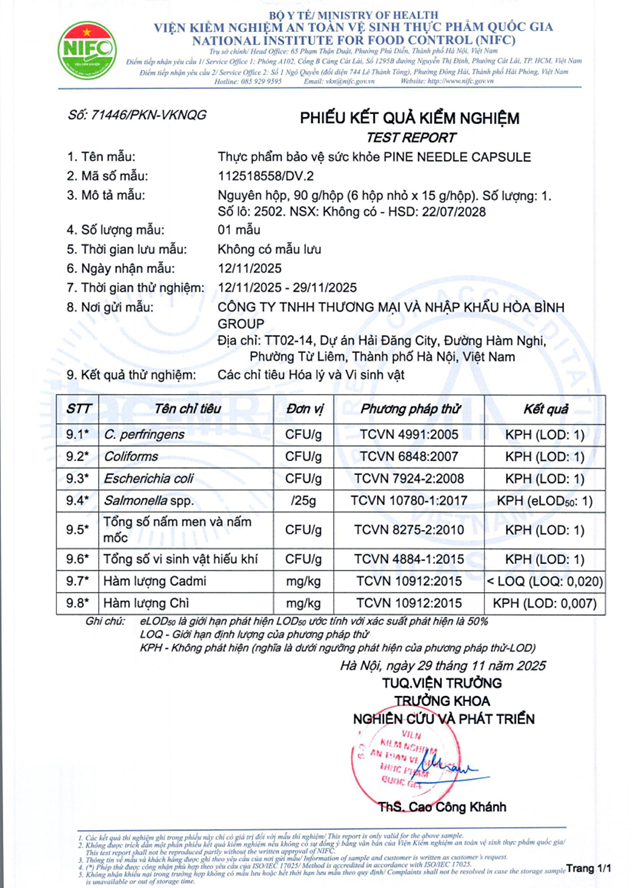 | Thành phần | Lá thông kim đỏ, D-α-Tocopherol |