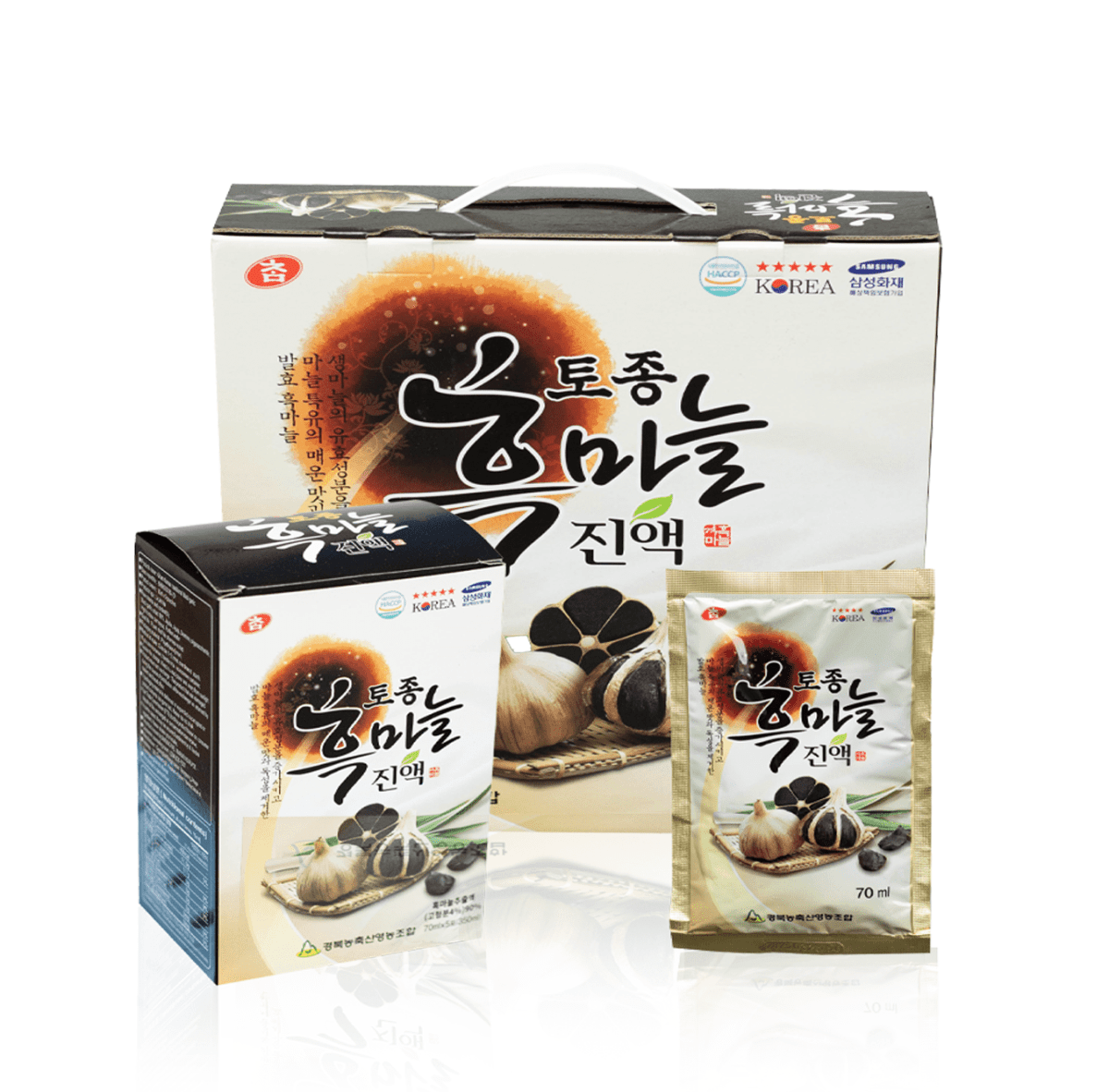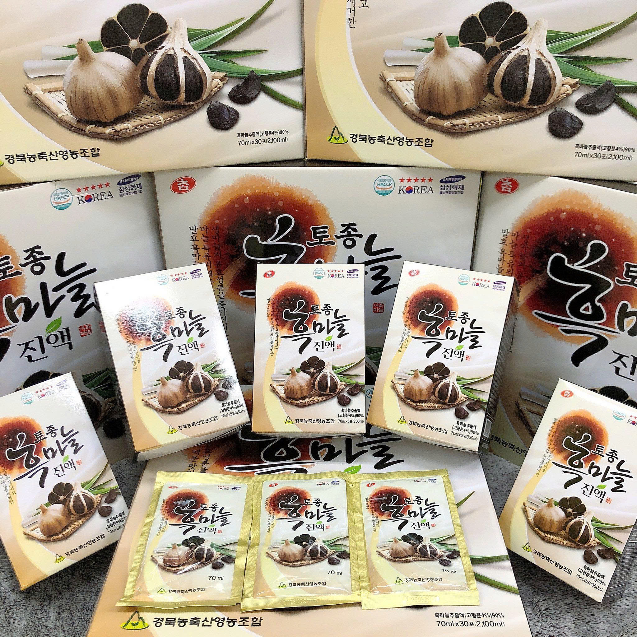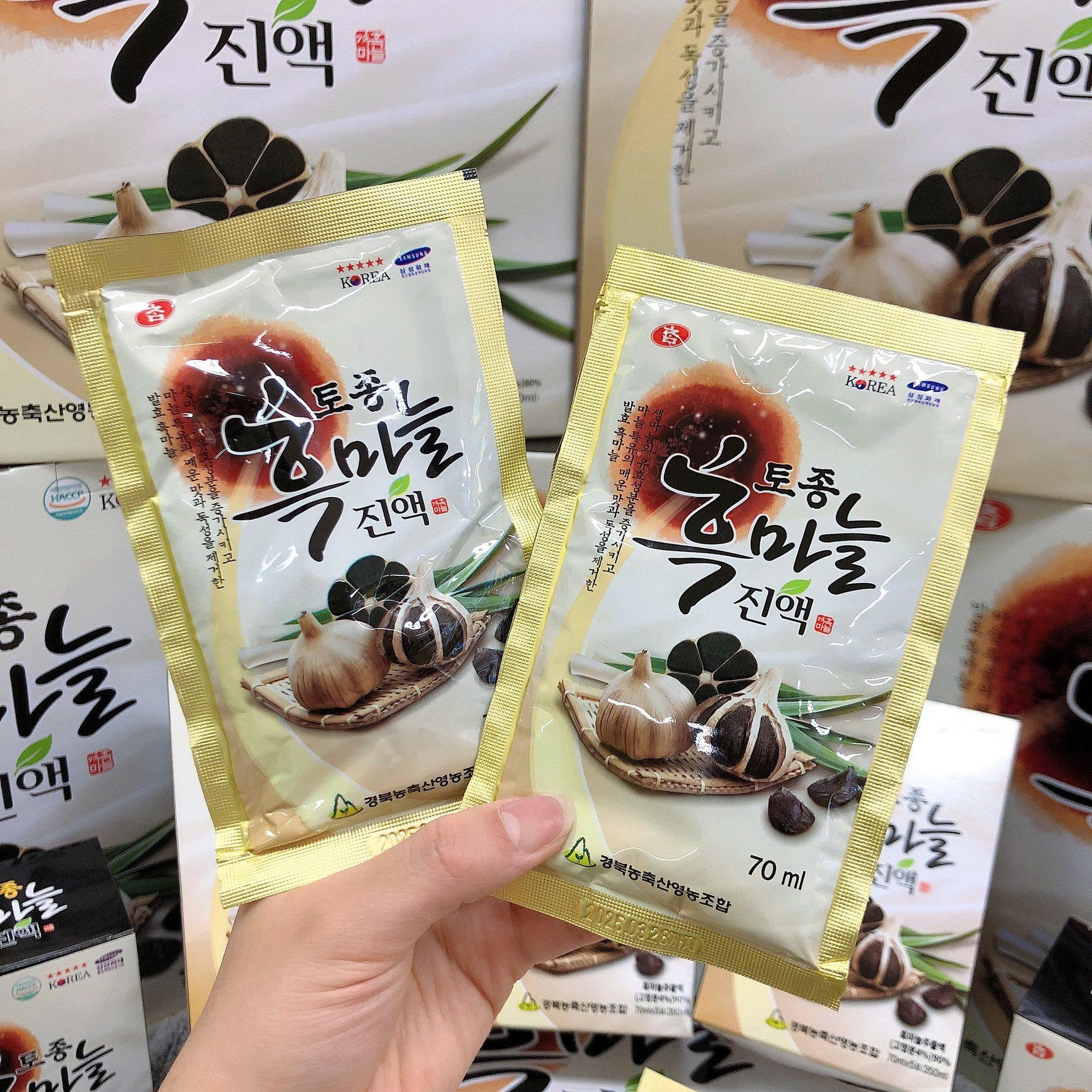 Nước uống tỏi đen Hàn Quốc được đóng gói trong các gói nhỏ 70ml, giúp bạn dễ dàng sử dụng và bảo quản. Bao bì sản phẩm được làm từ vật liệu an toàn, bảo vệ chất lượng nước uống bên trong.